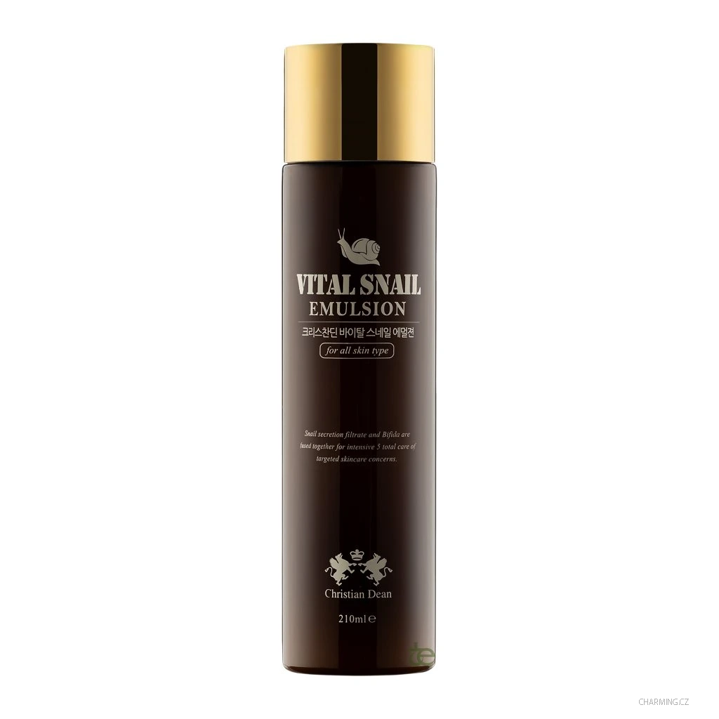 Christian Dean Vital Snail emulze představuje komplexní řešení pro unavenou, suchou a mdlou pleť, která ztratila svou přirozenou vitalitu. Tato korejská kosmetika kombinuje sílu hlemýždího sekretu, moderní biotechnologie v podobě Bifida fermentů a tradiční moudrosti 10 bylinných extraktů. Celá řada je navržena tak, aby obnovila rovnováhu mezi hydratací a výživou a posílila přirozenou bariéru pokožky. Je ideální volbou pro ty, kteří bojují s šupinkami a drsnou texturou pokožky. S produkty Vital Snail rozzáří a dlouhodobě regeneruje. Emulze je lehká jako mléko a silná jako sérum, je navržena pro intenzivní dodání živin tam, kde je pleť nejsušší. Její jemná receptura je balzámem pro drsnou a šupinatou pokožku, které vrací vláčnost a sametovou hebkost.
